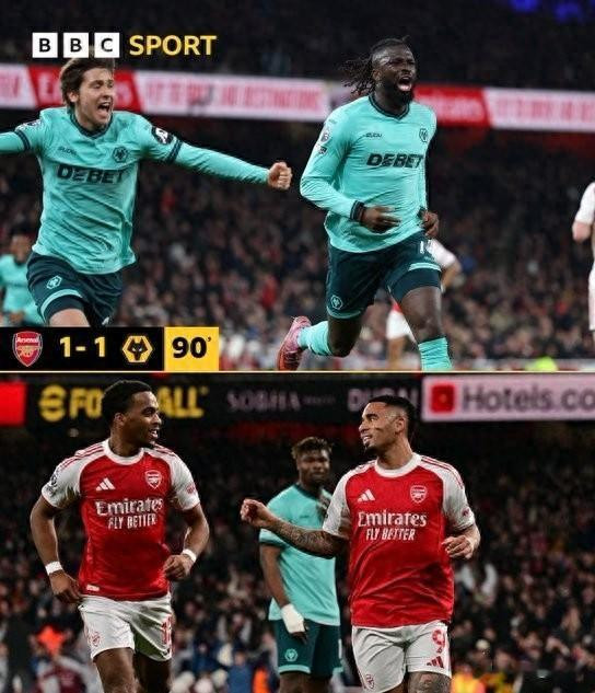 更讽刺的是,阿森纳的两个进球都是对手的乌龙球,自己没有一次成功的运动战得分。狼队虽然落败,但展现了惊人的韧性,他们全场3次射门就打入1球,反击效率极高。